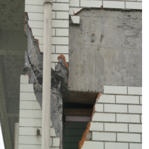 下圖是填充墻不當布置導致的主體結構構件破壞